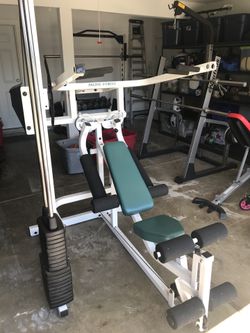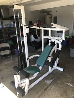 Owner had to move and had no space for itIncludes some dumbbells alsoThe picture of the white unit is a stock photo of what the. This gym has 2 different grip handles for chest press or seated rows seated leg extension standing leg curl bicep curl cable pec deck station lat pulldown low row. Fast Free shipping on many items.
