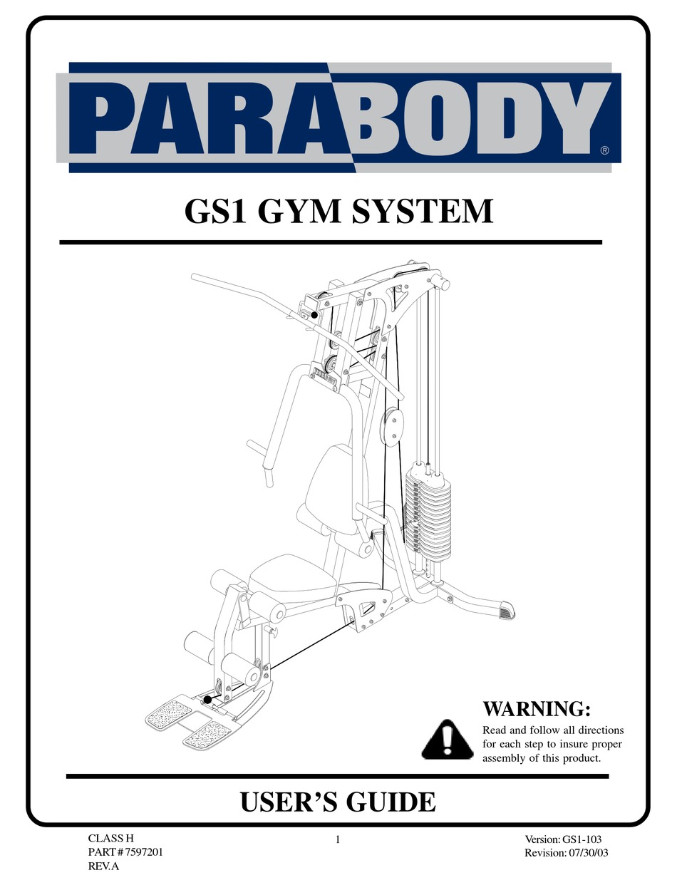 Important the 866103 strength building system must be assembled on a flat level. View and Download ParaBody GS6 exercise chart online. ParaBody GS6 Manuals User Guides.