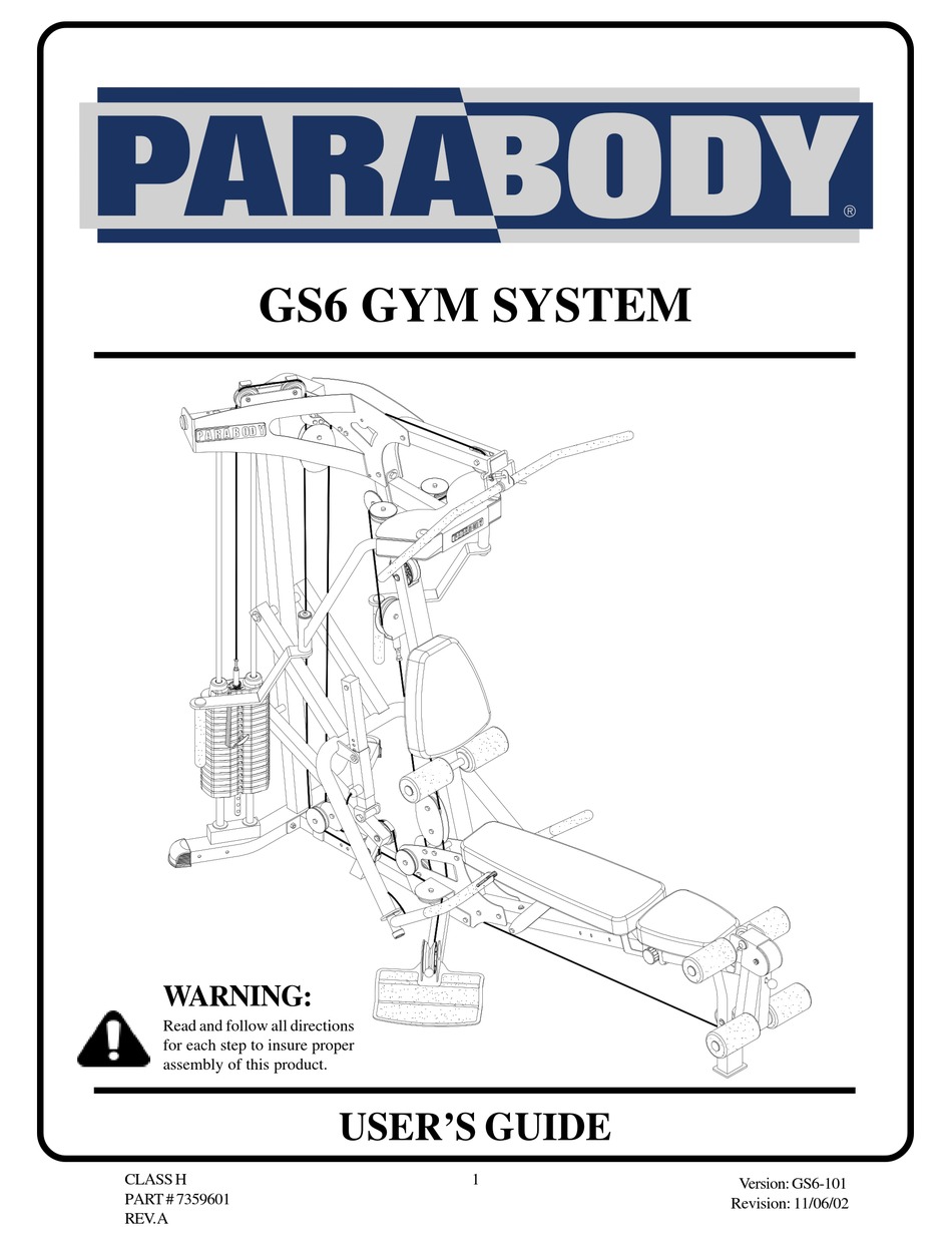 User manual ParaBody GS6 is a certain type of technical documentation being an integral element of any device we purchase. ParaBody Home Gym 441101 440. And Canada call 1-847-288-3300.